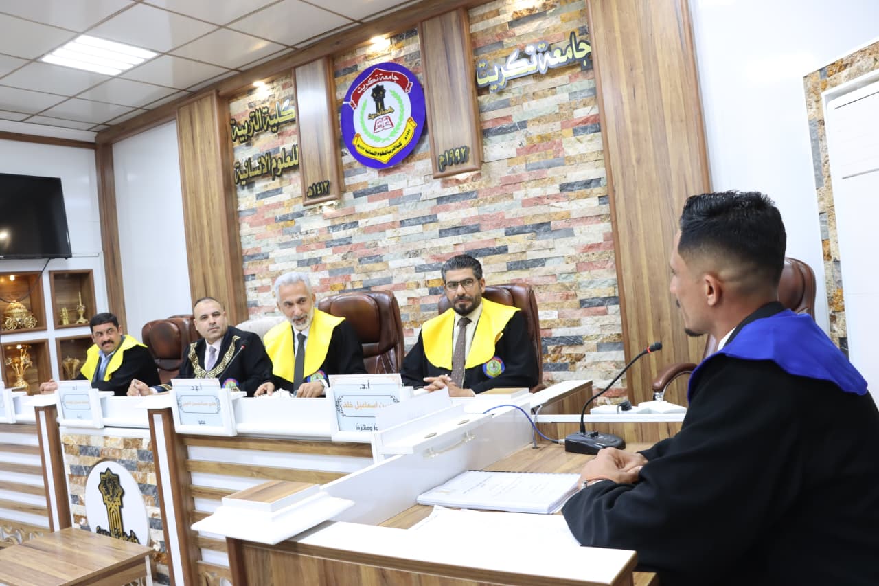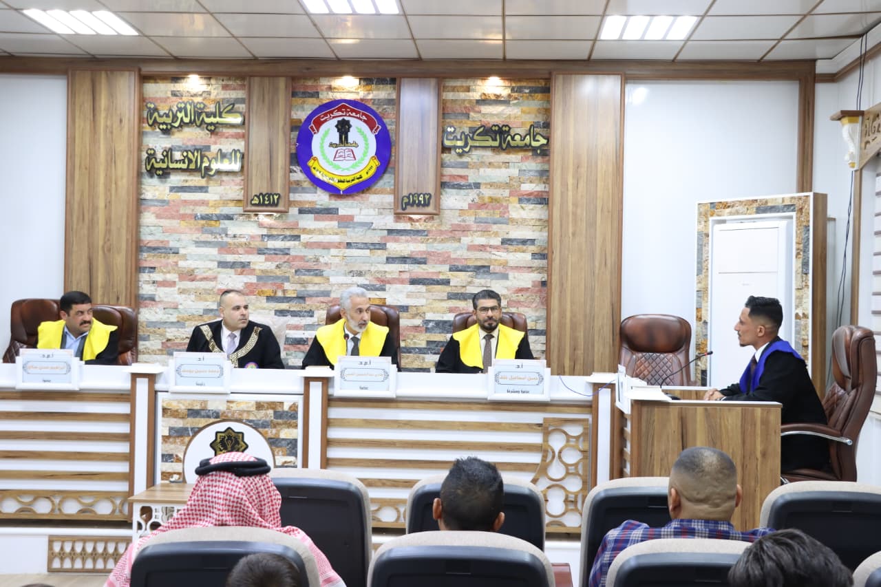 A master’s thesis was discussed at the Department of Arabic Language, College of Education for Humanities at University of Tikrit on Sunday (March 8, 2026). The thesis, submitted by the student Marwan Mukhlif Saleh Al-Qaisi, was entitled: