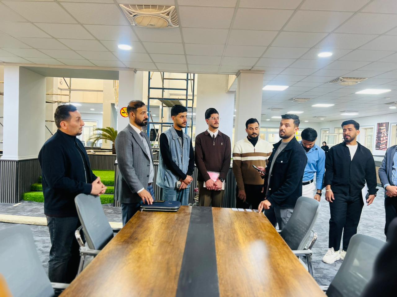 The visit included an introductory overview of the nature of the Library’s work, the resources and books it houses, as well as an explanation of the procedures for borrowing books and the services provided to students and researchers. The visit also aimed to familiarize students with the types of available resources and the methods of searching for and utilizing them in their academic studies and research.